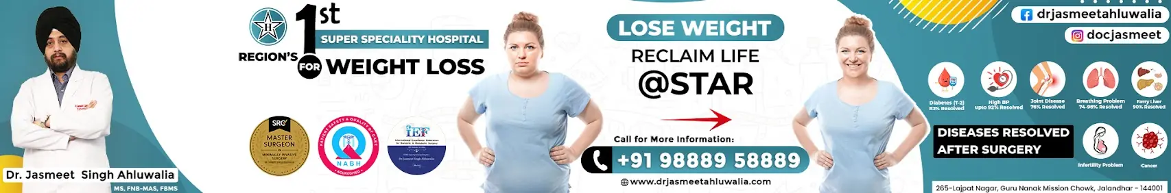 Dr. Jasmeet Singh Ahluwalia is a highly qualified and experienced surgeon specializing in Minimal Access and Bariatric Surgery. He holds an MS in General Surgery from Government Medical College, Patiala, and has completed prestigious fellowships, including the Fellowship of National Board in Minimal Access Surgery (FNB-MAS) from GEM Hospital, Coimbatore, under the mentorship of Dr. C. Palanivelu, and an International Fellowship in Bariatric and Metabolic Surgery (FMBS) from Taiwan.